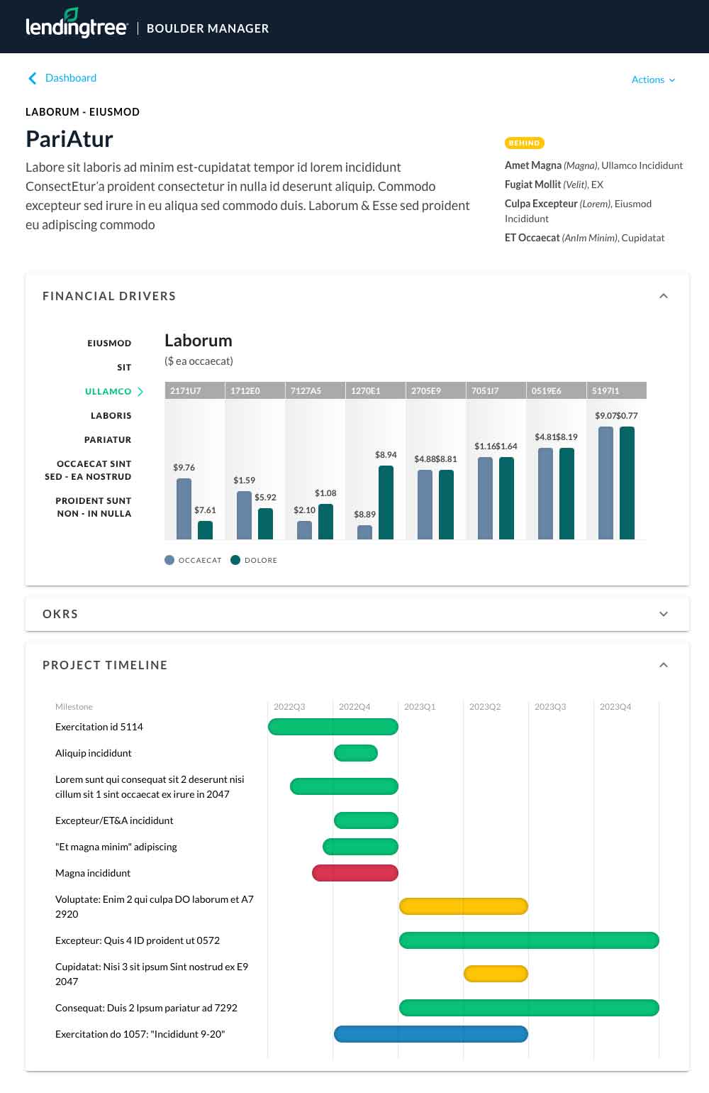 An app for LendingTree executives, offering a deep-dive into major initiatives and their metrics.